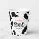 Celebremos un primer cumpleaños, un patrón de cowprint en blanco y negro con un nombre para personalizar que presenta un lindo dibujo digital de una vaca, que combina colores rosa coral, blanco y negro coordinados con el resto de la suite de cumpleaños. Diseñado y pintado por @rodicadraws.