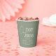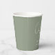 Tazas de papel para bodas de cena de ensayo de la víspera con fuente blanca verde salvia elegante