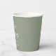 Vasos de papel para bodas con verde salvia elegante y letras blancas para la cena de ensayo un día antes