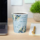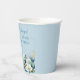 Esta elegante taza de papel para boda floral azul polvoriento dorado con brillo puede ser personalizada con sus nombres y fecha de boda.