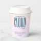 La novia está en la nube nueve taza de papel para despedida de soltera con un patrón de textura de nubes minimalista y moderno en colores azul pastel morado con tipografía moderna. Este producto es fácilmente editable. Si necesita ayuda con la personalización o necesita más productos de esta colección, por favor envíeme un mensaje a través de Zazzle.