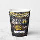 Raise a toast in style with these rustic Cheers & Beers birthday party paper cups! Featuring a dark wood background, glowing string lights, and two frosty beer mugs clinking together, this design sets the perfect tone for a fun brewery-inspired celebration. The bold yellow age number and customizable name banner make it easy to personalize for any milestone — from 21 to 99! Perfect for serving cold drinks, beer, soda, or cocktails, these durable paper cups bring your party theme together and add a festive touch to the celebration table.