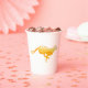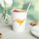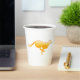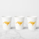 Una silueta amarilla de un chita corriendo. Este diseño parece realmente efectivo en estas tazas de papel