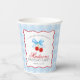 Vasos De Papel Cherry Sweet Blue Coquette Bow Gingham Cumpleaños