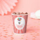 Deliciosa ducha de bebé rosa y blanca Cups de papel con un globo, bellamente diseñadas para albergar sorpresas dulces para los clientes que celebran la llegada.