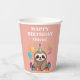Vasos De Papel Chica Sloth Feliz cumpleaños Fiesta Rosa Personali