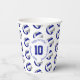 Estas tazas de papel de la fiesta de cumpleaños con temática de voleibol presentan varias bolitas de voleibol pequeñas, azules, grises y blancas dispuestas en un sencillo patrón de caída - el texto en un círculo blanco se puede personalizar, actualmente el número 10 para representar la edad de un niño rodeado por las palabras "Feliz cumpleaños" - de katz_d_zynes
