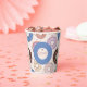 Sirva sus bebidas con estilo con esta taza de papel de la fiesta de cumpleaños de Sweet Donut. Decorado con donuts de color rosa pastel, marrón chocolate, crema y azul con salpicaduras y corazones, este diseño es perfecto para celebrar una tienda de dulces o un postre. Personalice el nombre de su hijo con un detalle fiesta divertido y memorable. Ideal para los primeros cumpleaños de los chicas, los fiestas de donut y los postres pastel.
