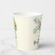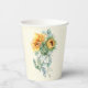 Estas tazas de papel divertidas para el chocolate nupcial lucen girasoles rústicos y eucalipto. Tus invitados amarán estas tazas de papel que coinciden con otras ideas de chocolate nupcial.