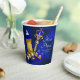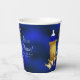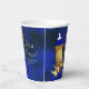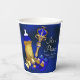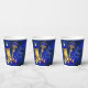 Tazas de papel para baby shower del príncipe con hermosas cosas del príncipe en azul real y dorado sobre un fondo azul real precioso. Puedes personalizar estas tazas de papel para baby shower del príncipe simplemente agregando tu texto.