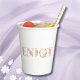 Personaliza esta taza de papel para brindis de boda "Love is in Bloom", la adición perfecta para cualquier picnic o fiesta elegante. Esta taza elegante presenta un hermoso diseño floral con delicadas rosas en rosa suave sobre un fondo blanco crujiente, complementado con exuberante vegetación y letra script. La palabra "Enjoy" está elegantemente escrita en letras doradas lujosas, lo que añade un toque de sofisticación al estilo femenino. Perfectas para brindar por la futura novia, estas tazas combinan a la perfección la elegancia chic con el encanto caprichoso, lo que las convierte en una opción ideal para una celebración de boda memorable y con estilo.