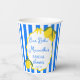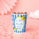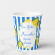 Ciao Bella Dolce vita Limones rayas azules Italian despedida de soltera plantilla de vasos de papel personalizados, limones cítricos rayas azules vasos de papel personalizados con monograma para despedida de soltera; verano despedida de soltera Italian vasos de papel impresos, vintage despedida de soltera Italian vasos de papel, borde ondulado vasos de papel personalizados con nombre para despedida de soltera funky