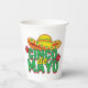 Estas placas de papel Cinco de Mayo tienen un sombrero amarillo grande con las palabras "cinco de mayo" en un tipo de letra verde decorativo.