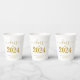 Elegante y elegante oferta de fiesta de graduación de personalizado. Celebra el logro de los graduados con estilo con estas tazas de papel de moda para la fiesta de graduación. Funciones de diseño "Clase de 2024" en fuente dorada sobre un fondo blanco limpio. Personalice este producto agregando el nombre y el nombre de la escuela. Fácil de personalizar. Se dispone de material para fiestas de graduación coincidente. ¡Enhorabuena!