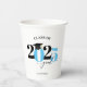 Este vaso de papel presenta una moderna clase azul claro y negro de diseño 2023. Ofrece texto personalizado para el nombre del graduado o el nombre de la escuela. El diseño está acentuado por un gorra de graduación negro.
