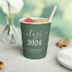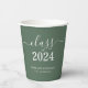 Elegante y elegante oferta de fiesta de graduación de personalizado. Celebra el logro de los graduados con estilo con estas tazas de papel de moda para la fiesta de graduación. El diseño presenta "Clase de 2024" con un elegante tipo de letra blanco sobre un hermoso fondo verde sabio. Personalice este producto agregando el nombre de su graduado, el año de graduación y los detalles de la escuela. Fácil de personalizar. Se dispone de material para fiestas de graduación coincidente. ¡Enhorabuena!