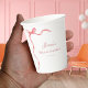 Estas hermosas tazas de papel, con cinta rosa y texto personalizado, serían un gran añadido a tu celebración de Bridal Shower. Agrega fácilmente tus propios detalles haciendo clic en la opción "personalizar".