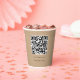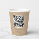 Un código QR profesional y una taza de papel de texto con un fondo de papel marrón kraft. Perfecto para su negocio, oficina, evento corporativo, negocios de hospitalidad, etc.