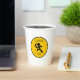 A playful illustration of a stick figure running while carrying a steaming cup of coffee. The text "COFFEE" is at the top and "RUN" at the bottom, indicating the urgency of getting that essential cup of coffee.