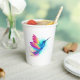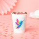 Colibrí luminoso, irrisorio, exótico volador sobre fondo blanco, pintado con pintura multicolor, acuarela. Colibrí arcoiris.