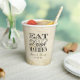 Estas tazas de papel son perfectas para cualquier persona que tenga una boda o cena de ensayo este año. El diseño cuenta con tipografía "comer, beber & casarse" en un fondo con efecto vintage y texto de plantilla fácil de personalizar. Los artículos coincidentes se pueden encontrar en la colección.