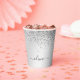 Vaso elegante con monograma de brillo y destellos plateados para cumpleaños, boda, fiesta de despedida de soltera o fiesta de soltera. Este vaso para fiesta de cumpleaños se puede personalizar para incluir tu inicial y nombre. Por favor, contacta con el diseñador para obtener artículos personalizados que coincidan.