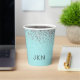 Vaso elegante con monograma y brillo falso plateado y azul Aqua para cumpleaños, boda, baby shower o despedida de soltera. Este vaso para cumpleaños se puede personalizar con tus iniciales. Por favor, contacta al diseñador para obtener artículos personalizados a juego.