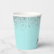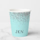 Vasos de papel con monograma y brillo plateado azu
