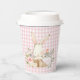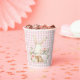 Cute taza de papel con una botella de agua dulce en una cesta en la parte delantera. Adorable. Los tonos rosa pastel son suaves y delicados. El conejo de conejo agrega una dulzura simple a esta taza. Transfiera este patrón a otros productos para completar su tema. Perfecto para su evento especial.