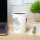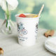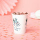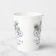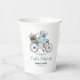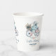 Un conejito de Pascua montando una bicicleta con Pascua lleno de flores de primavera.