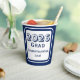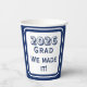 Design features a navy-blue background to a white rectangular shape bearing the text you supply which is featured in a navy-blue font. Design is displayed on both sides of cup. Each side bears a different bottom message. Designed to coordinate with the "High School Graduation Party" collection. Available in a variety of colors.