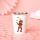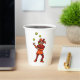 Un gracioso malabarista haciendo malabares con cuatro bolas. Este diseño parece realmente efectivo en estas tazas de papel