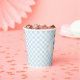 Cookie Monster quiere ayudar a celebrar el primer cumpleaños de su bebé con estos cups de papel de polka azul personalizados. © 2021 Sesame Workshop. www.sesamestreet.org