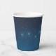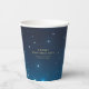 Copa de papel de vacaciones de navidades con estrellas. Ideal para tu fiesta de vacaciones, evento de negocios, gala o ocasión especial. Los colores azul y dorado. Utilice la plantilla para crear su propia taza de papel de vacaciones para Navidades.