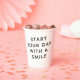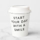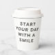 Un vaso de papel ecológico con la cita edificante "Comienza tu día con una sonrisa". Perfecto para el café, el té, los eventos o como impulso diario de la motivación.inspiradora taza de papel, taza de café motivacional, comenzar el día con una sonrisa, taza de vibraciones positivas, taza de cotización desechable, taza de fiesta de levantamiento, taza de papel ecológica, vajilla de bebida motivacional, taza de café de evento, taza de inspiración diaria