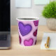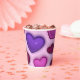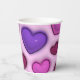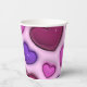 Colorida taza de papel con corazones rojos, rosados y púrpuras 3D brillante