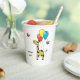 taza de papel con una tierna jirafa y pájaros. Se puede personalizar el nombre, el tipo de letra, el tamaño y la posición, el texto es totalmente editable. También puede cambiar el tamaño de la imagen.