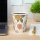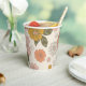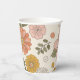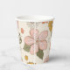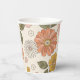 Flores de melocotón, verde y dorado en una taza de papel crema. Perfecto para una fiesta de cumpleaños para alguien nacido en los años 70.