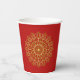 Elegantes tazas de papel rojas y doradas. Ideal para fiestas y ocasiones festivas. Fondo rojo con un adorno de inspiración árabe dorado de estilo moderno. Resumen, ilustracion, elegante, geométrico, moderno, étnico, barroco, lujoso, árabe, morisco, motivo. Tamaño: 236 ml, sin tapa.