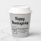 ¡Feliz Día de Acción de Gracias! Festividad para celebrar este noviembre para agradecer por las bendiciones que recibimos. También es una de las vacaciones para promocionar su negocio. taza de papel para su negocio de café que usted puede personalizar para poner su marca de negocio y con el saludo de Acción de Gracias. Personalizar y úsalo para saludar a sus clientes este Día de Acción de Gracias y para promocionar su negocio o promocionar su marca mientras sus clientes disfrutan tomando el delicioso café aromático que les sirvió. taza de papel de personalizable que puede utilizar para crear conciencia de la marca. Los colores de diseño son textos negros sobre fondo gris. Para personalizar de este vaso de papel, cargue su logotipo de negocio, escriba su nombre de negocio, dirección y número de teléfono. Compruebe la apariencia después de cargar el logotipo y escribir textos. Si la apariencia le resulta agradable, puede realizar su pedido ahora. Si necesita cambiar el tamaño y mover el logotipo y los textos para que encajen en este vaso de papel, por favor cambie la herramienta de diseño. También puede cambiar el color de fondo, el color de fuente y el estilo de fuente en la herramienta de diseño. ¡Feliz Día de Acción de Gracias! Te deseo más ventas esta fiesta.