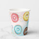 Copa de papel para un segundo cumpleaños, decorada con un hermoso ilustracion acuarela de un donut dulce y delicioso.