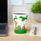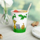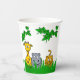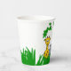 Tira un salvaje fiesta de safari. El diseño incluye viñas, hierba, una jirafa, un hipopótamo y una cebra.