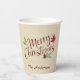 Estas tazas de papel son perfectas para fiestas Navidades y entretenimiento vacacional. Presentan el mensaje "Feliz Navidad" en un marrón en un fondo de color marrón claro con toques de pino y acentos de cintura. Utilice el campo de plantilla para agregar su nombre o mensaje en el texto de color que se muestra a continuación.