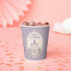 Un elegante vaso de papel de cuento de hadas morado para una celebración especial de cumpleaños de la princesa.