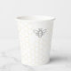 taza de papel Fiesta de abeja con panal y abeja gráfica negra.