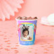 Taza de papel para el cumpleaños del niño con un suave fondo de color arcoiris y acuarela con texto. Sólo tienes que añadir tu mensaje personal en el símbolo del sistema personalizado y seleccionar colores en el símbolo del personalizar. HAMbyWhiteGlove aka HAMbyWG