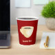 taza de café beige. Color de fondo personalizado. Texto personalizado en ambos lados.
