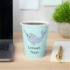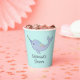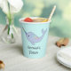 Un lindo narval arcoiris con espacio para palabras personalizados en un fondo azul marino claro. El diseño de la ballena se repite en el frente y en la parte trasera.