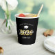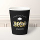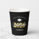 Copas de papel de la fiesta de graduación de personalizados con un gorro de graduación, 2023 en Relieve metalizado de oro falso, nombre de la escuela, nombre de los estudiantes y la palabra graduada con un tipo de letra de guión.