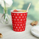 Elegantes copos de nieve blancos sobre tazas de papel de Navidades rojos. El texto puede ser personalizado para Navidades, cumpleaños y más. Ideal para Navidades y temporada de invierno.